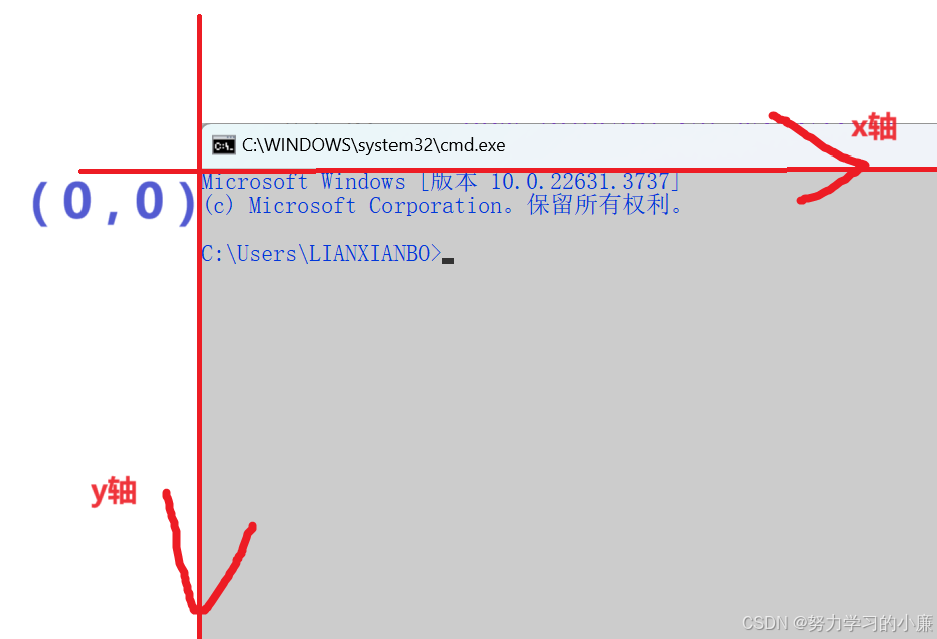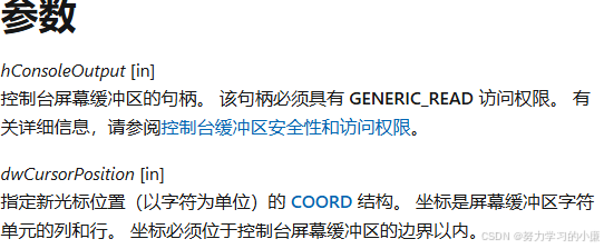 COORD是Windows API中自定义的一个结构体,表示一个字符在控制台屏幕缓冲区的坐标,坐标(0,0)的原点位于缓冲区的顶部左侧单元格。