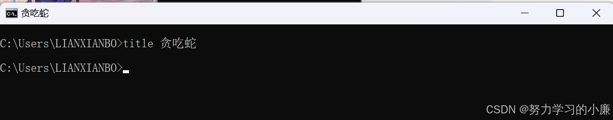 我们设置控制台名称为 贪吃蛇,使用title 指令