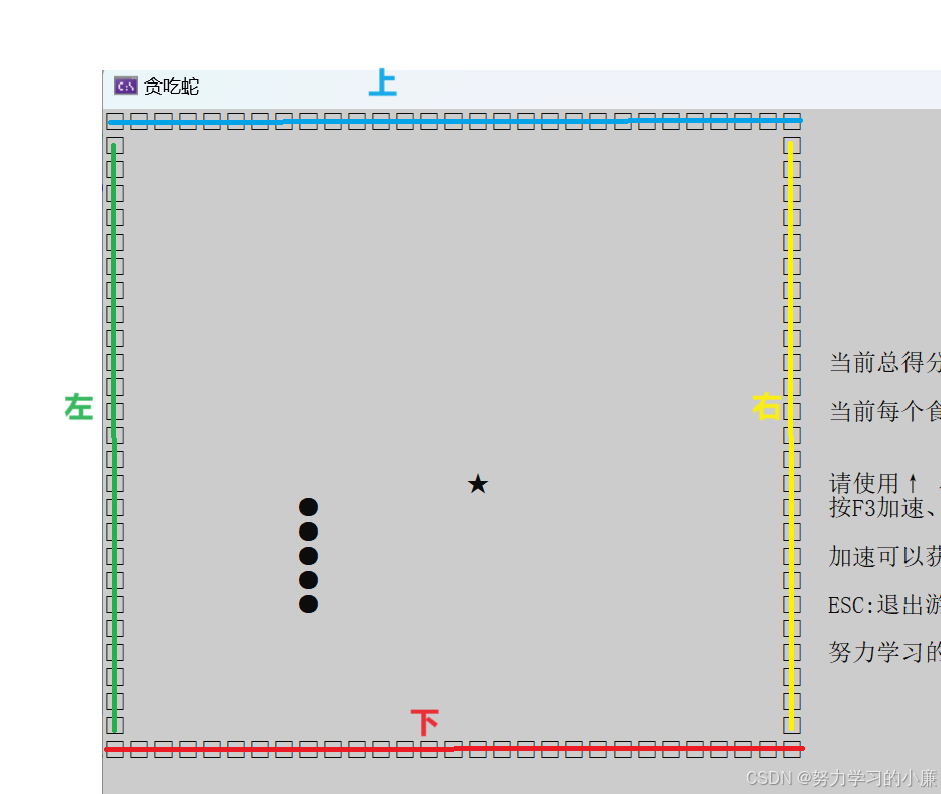 游戏结束,打印出来游戏结束的原因,是撞到墙了呢?还是撞到自己了呢?还是按Esc正常退出了呢?