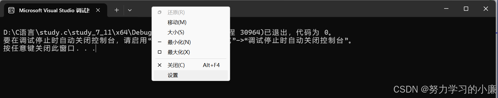 本次贪吃蛇小游戏是在VS2022上来实现的,平常我们运行起来的黑框程序就是控制台层序