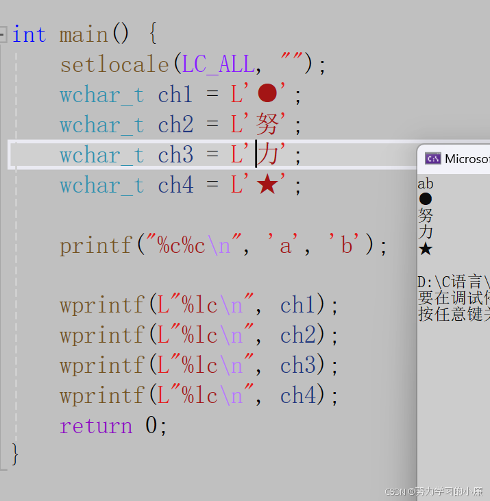 #define KEY_PRESS(VK) ( (GetAsyncKeyState(VK) & 0x1) ? 1 : 0 )在贪吃蛇游戏中,我们会涉及到墙体□ 和蛇的身体● 的打印,而在VS中我们输出出来的是?