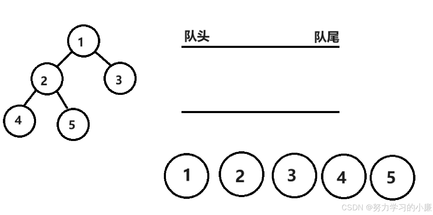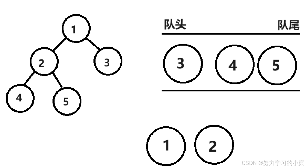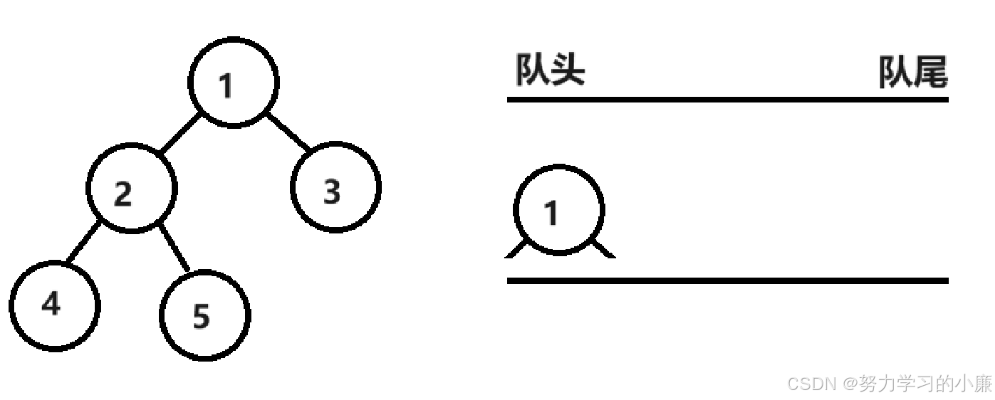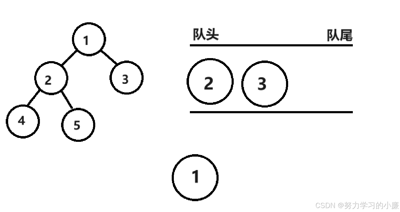 将1这个节点出队列,再把左右子节点插入到队列当中