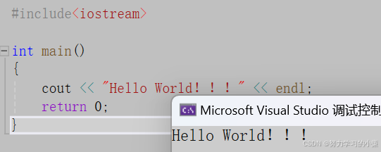 C++ 的第一个程序,梦回出学C语言,第一次使用C语言写代码;这里使用C++写第一个C++代码。