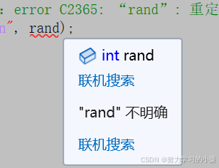 // 编译报错:error C2365: “rand”: 重定义;以前的定义是“函数”