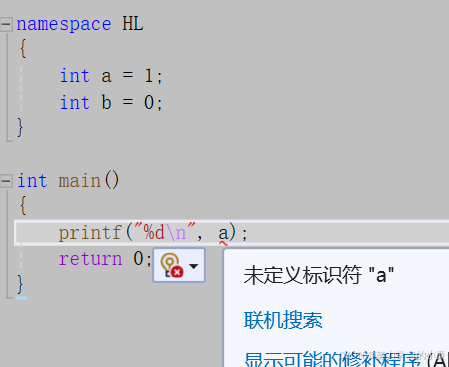 //printf("%d\n", HL::b); 这里会提示未定义的标识符‘b’