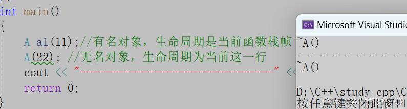 A a1(11);//有名对象,生命周期是当前函数栈帧
