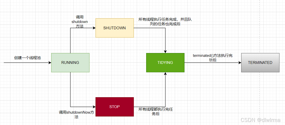 通常线程池有以下5中状态
