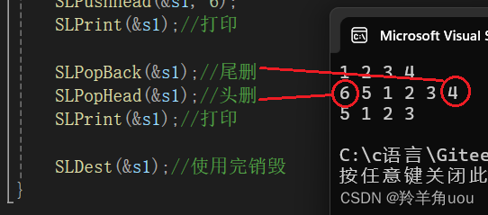 void SLPopHead(SL* ps);//头删在SeqList.c中进行函数的实现