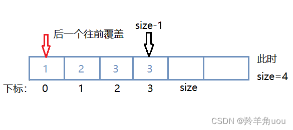 我们对顺序表的控制只在size之前,让要删除的数据不在控制范围内,且这样操作不影响顺序表的增、删、查、改即可