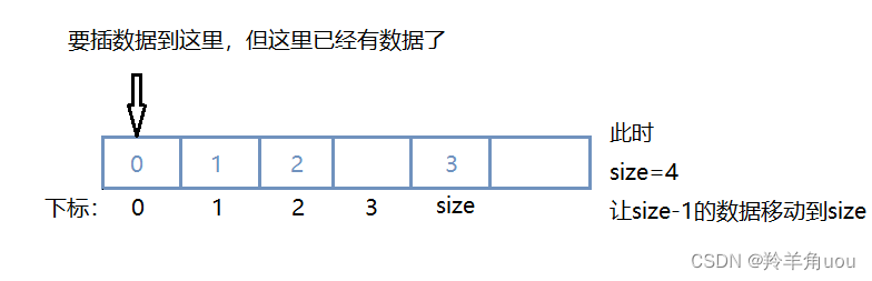 所以我们要把顺序表中已有的数据整体往后挪动一位