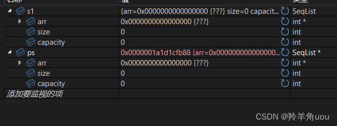 }现在问题又来了,这个capacity我们初始化为0了,怎么办呢?那我们再创建一个变量判断一下capacity是否为0,为0就默认给4个空间大小,不为0就直接变成原来的2倍,然后把ps->capacity*2换成newcapacity