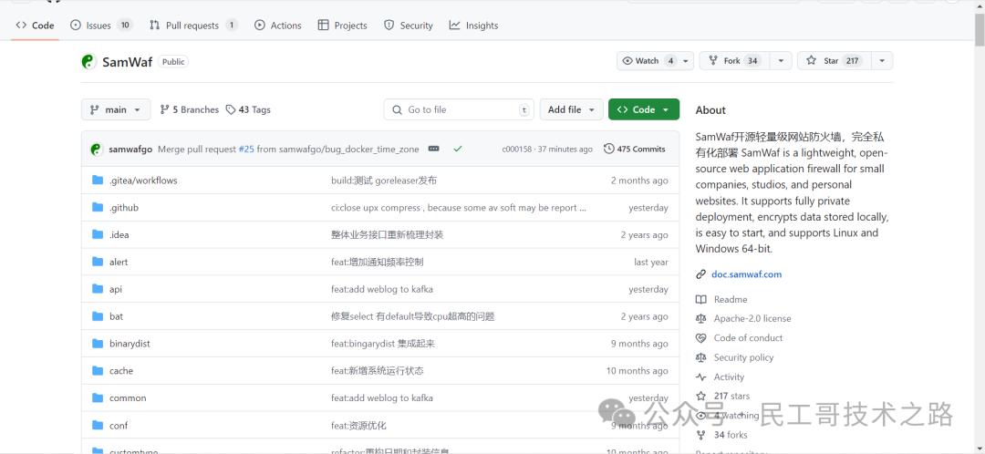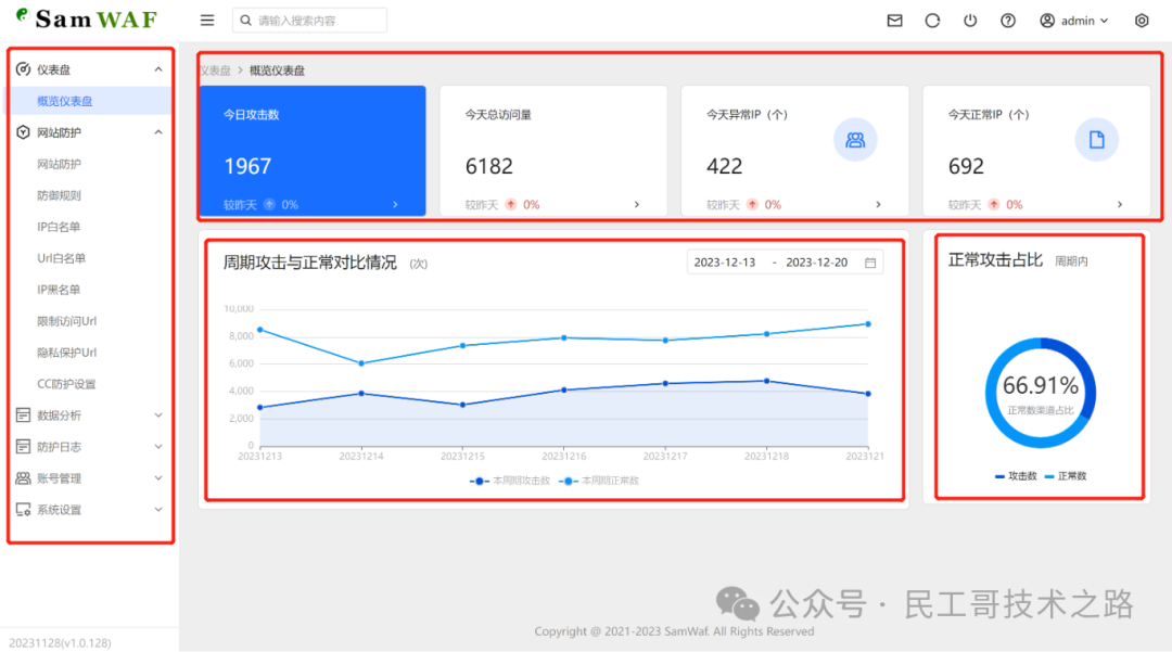 SamWaf 网站防火墙是一款专为小公司、工作室和个人网站设计的开源轻量级网站应用防火墙。完全私有化部署,数据加密且仅保存本地,一键启动,支持Linux,Windows 64位。