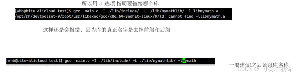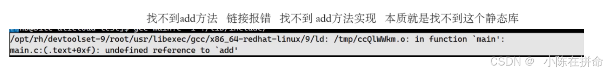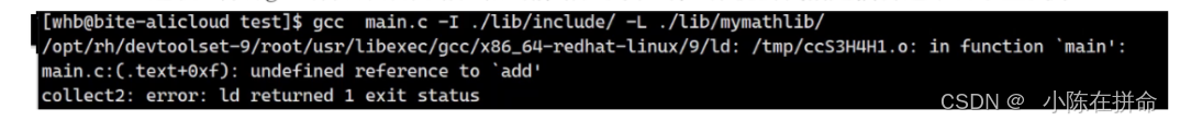 可是又报错了,原因是链接报错,因为gcc只能在系统默认路径和当前路径下去找这个库