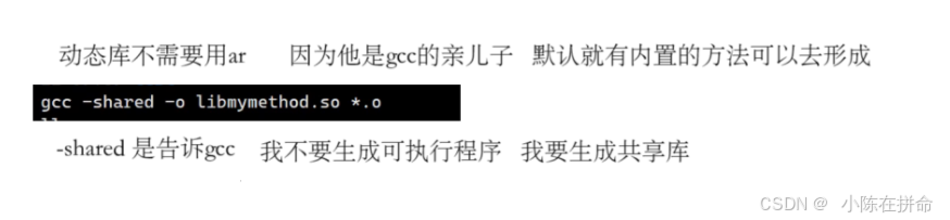 (2)动态库的形成不需要用ar 因为他是gcc的亲儿子,默认就有内置的选项可以去形成,直接带-share选项就是告诉gcc:我不要生成可执行程序,我要生成共享库(前提是这些文件里面没有main函数!!)