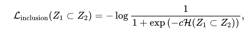 利用包含损失,作者对模型施加两个约束。首先,作者让文本分布包括图像分布,即。这一直观来源于以前的研究,表明“文本蕴含图像”。概念上,当作者描述一张图像时,作者通过任意选择相关概念的乘积来选择产品。因此,文本通常比图像具有更广泛的信息。作为另一个约束,作者让部分信息的嵌入包括其全部信息的嵌入,即。例如,作者通过随机遮挡 Token 生成包含原始描述部分信息的文本。同样,作者通过遮挡图像 Token 生成部分图像。在实际中,作者遮挡输入 Token 的75%以生成部分信息。对于文本,作者用[MASK]替换输入 Token ,对于图像,作者删除输入的 Token 。