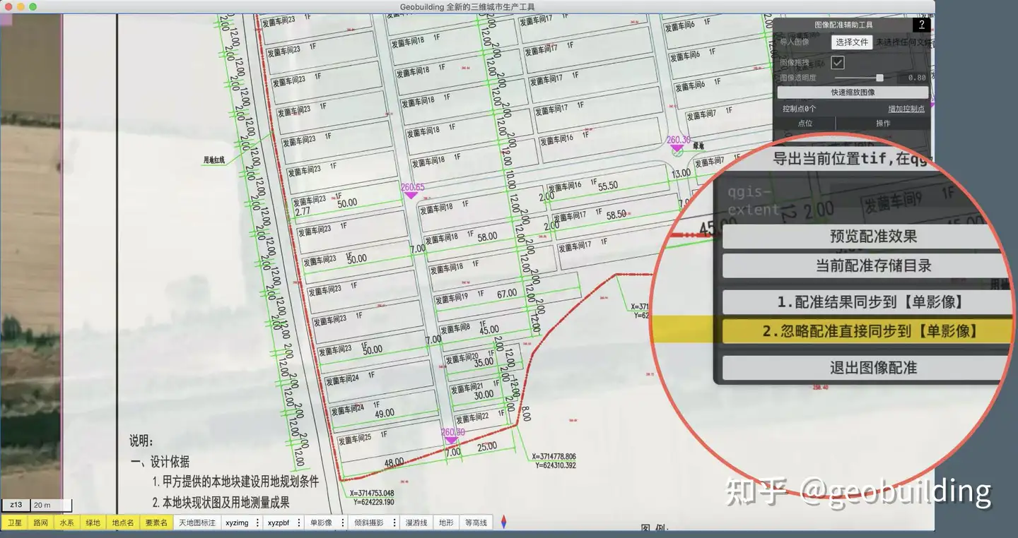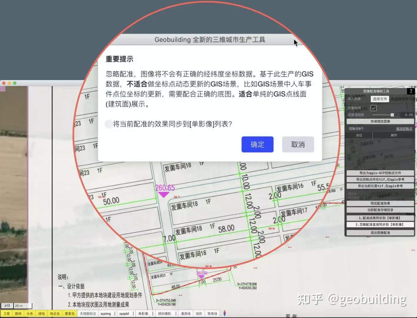为了解决这种场景。Geobuilding软件在<配准工具>中增加了《忽略配准同步到单影像》选项,现在可以方便的导入任何图像,不需要再采集控制点,直接同步到软件【单影像】中