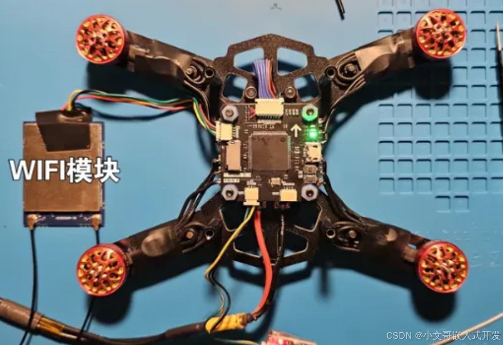 远程通信方面,T113通过USB直接与WiFi模块连接,接收机则是连接串口通过SBUS和T113直接连接,收到指令信号后由4路PWM直接给电机控制输出,以实现自稳飞行的功能。