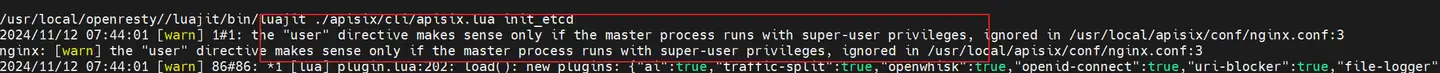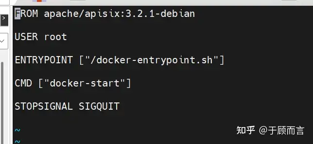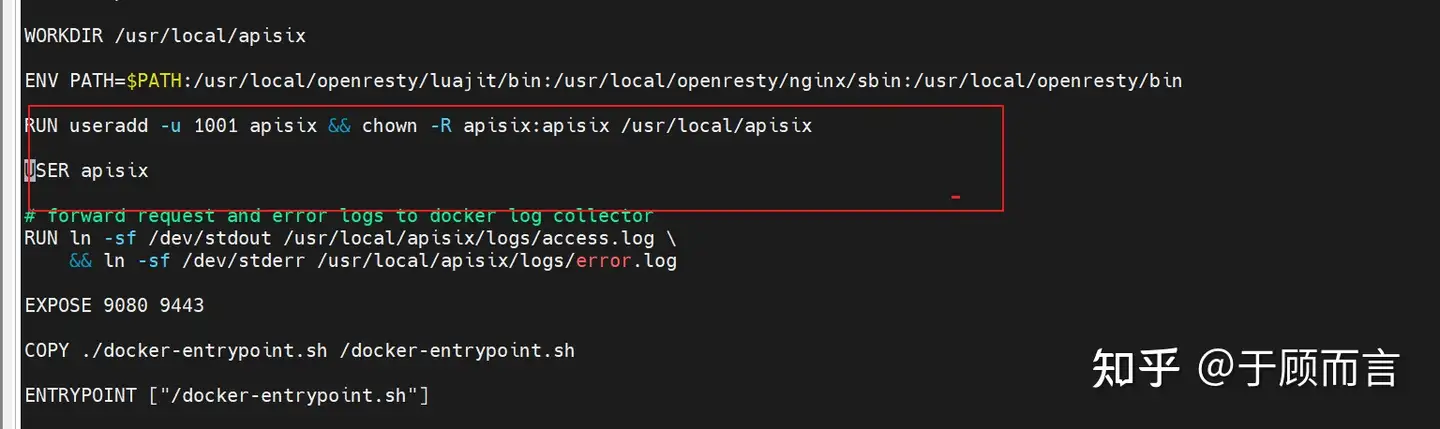 但这样还不行,因为apache/apisix:3.2.1-debian的dokcerfile是以自建用户apisix启动的,所以即使配置了user root也会被忽略掉: