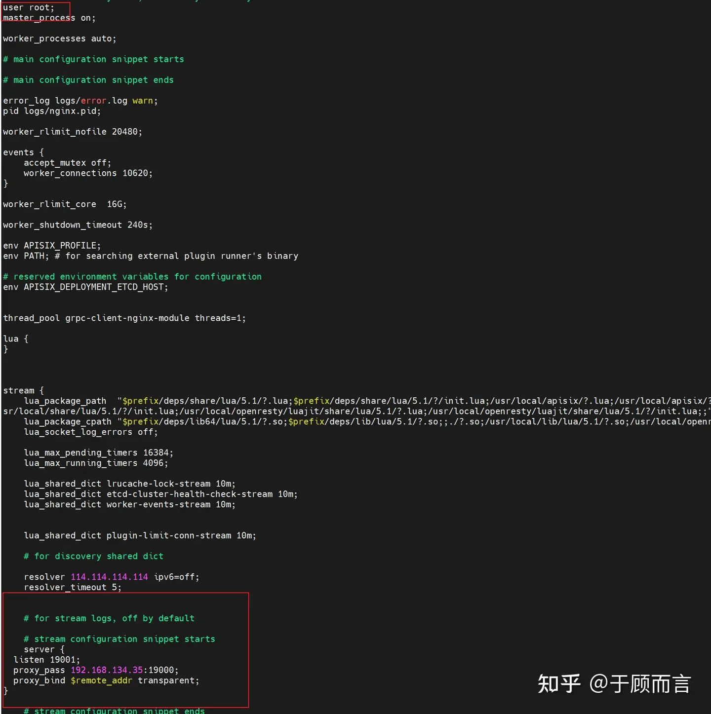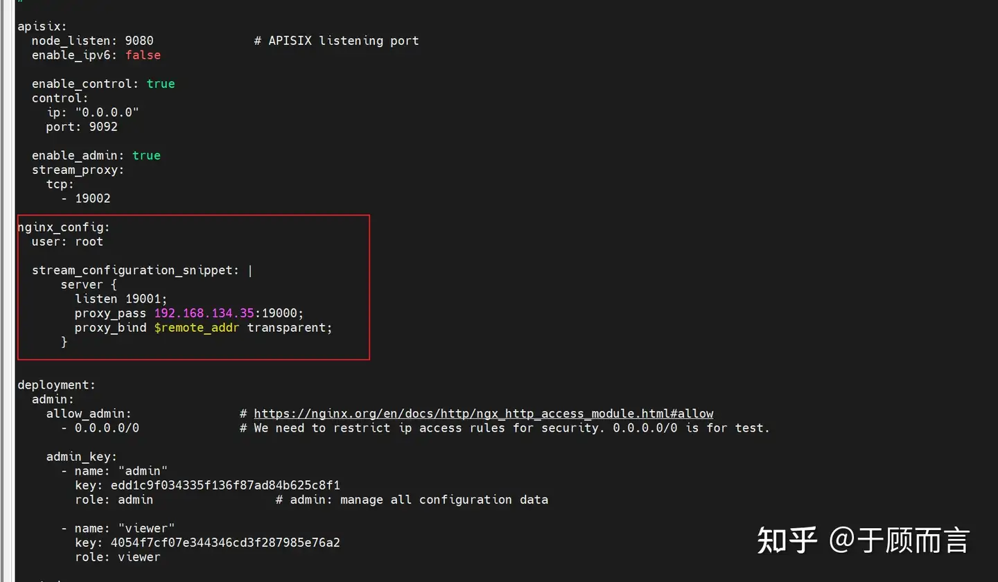 对于从 IP 地址 192.168.134.35 发出的 TCP 流量,且源端口在 19000 到 19005 范围内的流量,进行标记。被标记的流量会走自定义100的路由表发给代理主机(192.168.134.31) 2. 代理自己处理ngnix报文: