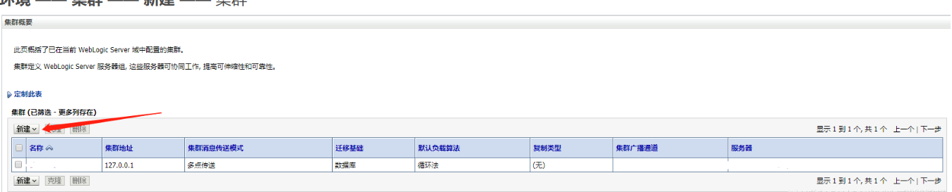 打开 WebLogic 管理控制台,进入 Environment > Clusters 页面。