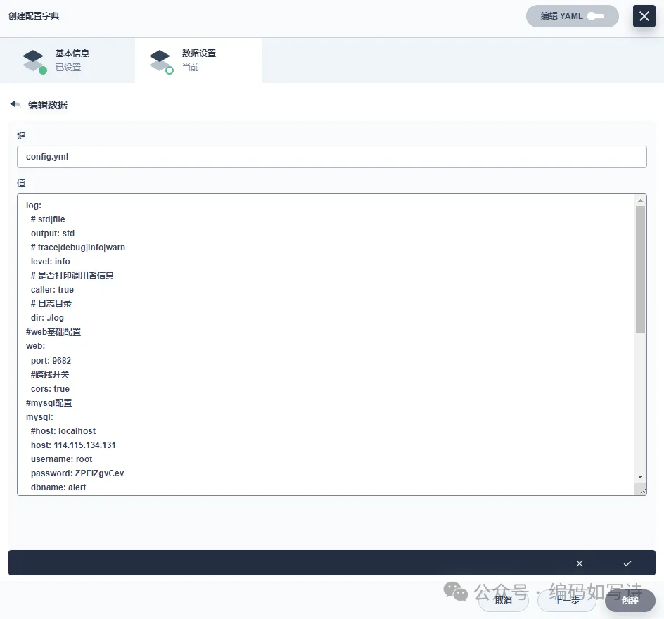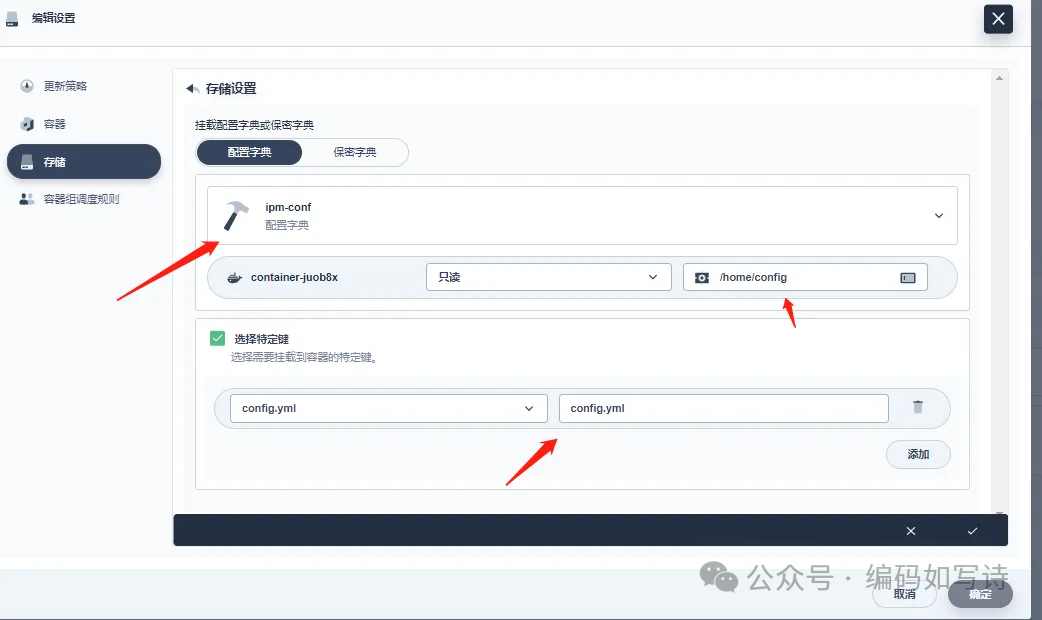 以上服务配置文件可共用一个,通过创建配置字典或者pvc形式都可以。