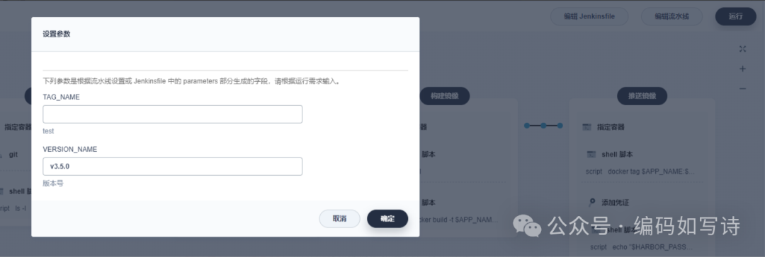 此处自动从gitlab拉取当前版本的代码,并按Jenkinsfile文档中写的进行打包。(该处主要流程为拉取代码,执行Dockerfile打包,并推送至harbor私有仓库)