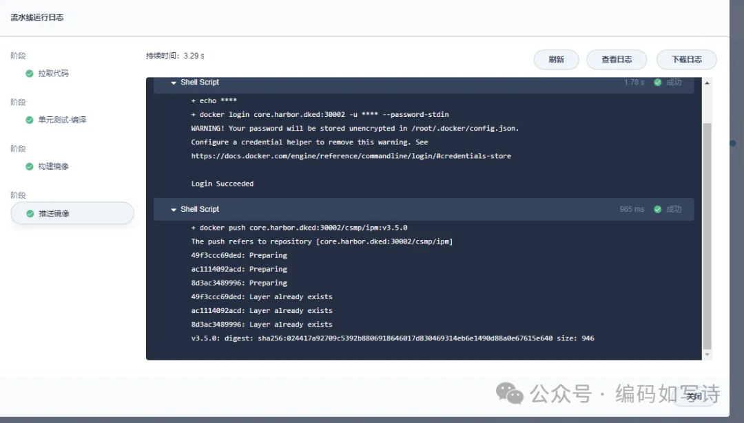 通过2.5日志可以看到,已经打包成功并推送至仓库