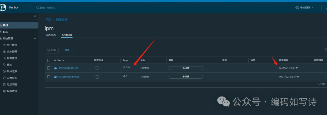 · 2.5运行完成后已上传至harbor,可到对应服务选择镜像版本升级。