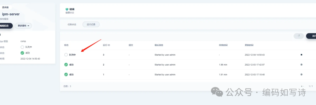 运行后可以看到当前状态,点击记录可以查看运行详情和日志