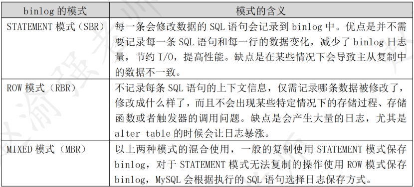 下表列举了binlog文件的三种模式。