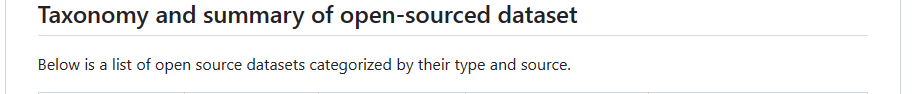 开源数据集的分类总结分为(分类,内容,形式):