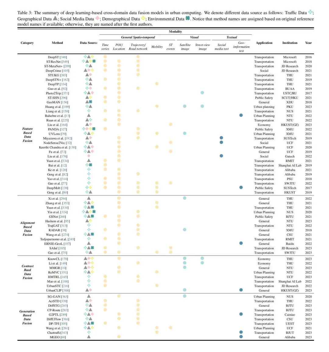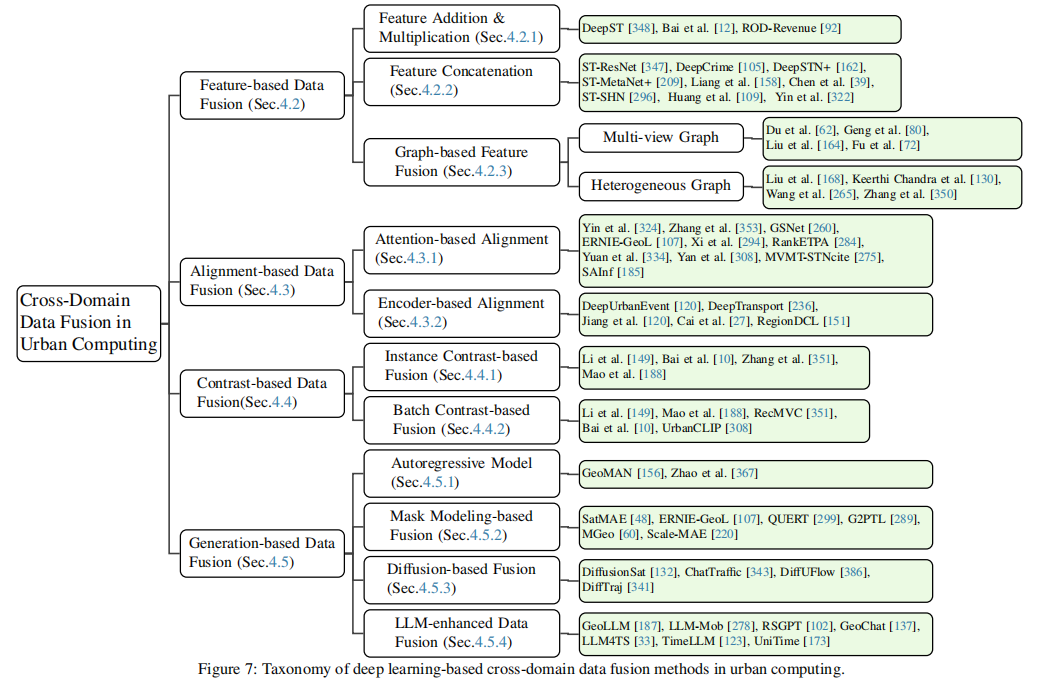 本篇综述的动机 :深度学习带来的范式转变使得之前关于城市数据融合的综述,有些过时了,因为传统的分类法可能无法恰当地捕捉这些先进方法之间的细微差别和差异。鉴于这个问题,该综述致力于弥补这一差距,并通过提供符合深度学习时代的全面且更新的分类法来提供当代视角。