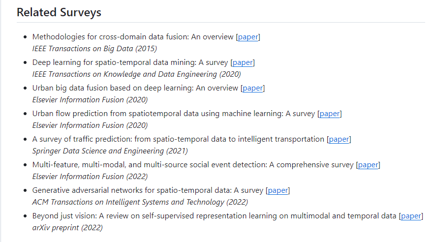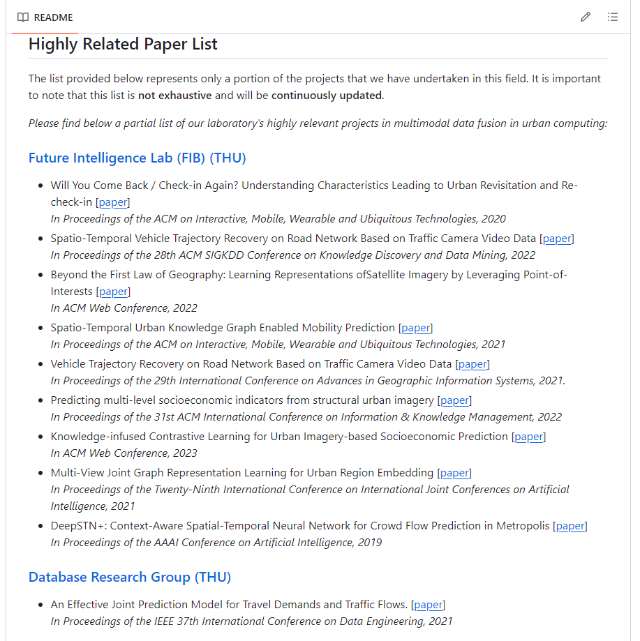 项目概览 项目地址 :https://github.com/yoshall/Awesome-Multimodal-Urban-Computing