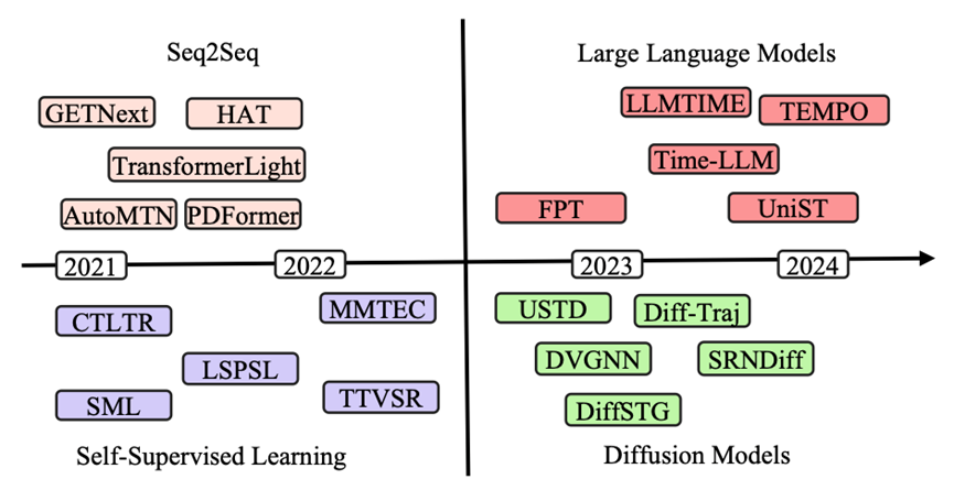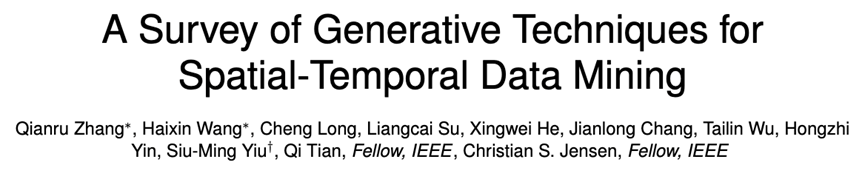 关键词:生成技术,时空数据挖掘,自监督学习,seq2seq,大语言模型,扩散模型