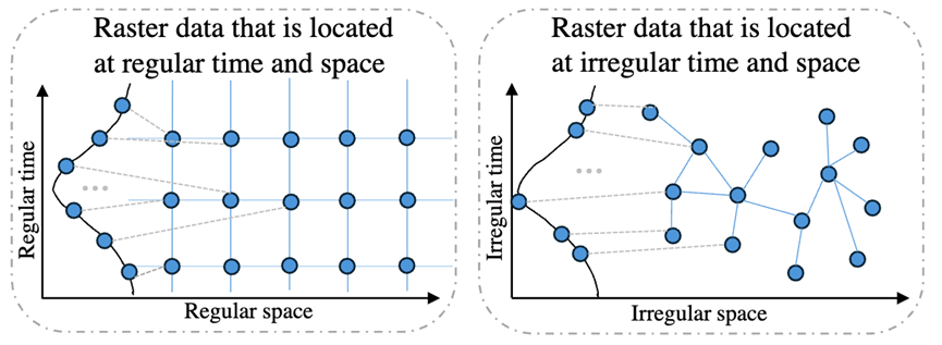 在固定时间和地点以及不固定时间和空间的栅格数据示意图