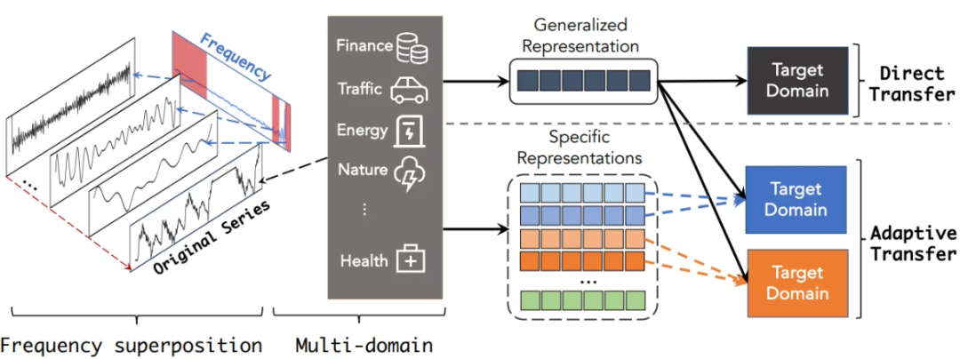 这篇文章提出了一种轻量高效的通用时间序列预测模型,通过频率分解学习在大规模时间序列数据上进行预训练,以获取统一的时间序列表征。同时,该模型利用时间序列寄存器获取领域特定信息,并在下游任务中实现自适应迁移。ROSE在多个基准测试中达到了SOTA表现,并为未来的时间序列预测模型提供了新的思路。