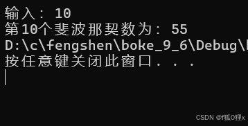 printf("第%d个斐波那契数为:%d", n, ret);