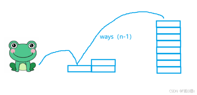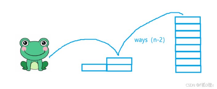 第二类:如果青蛙第一次跳了二级台阶,那么就还剩下n-2级台阶(ways(n-2)种跳法)