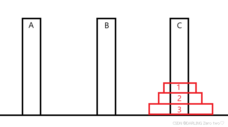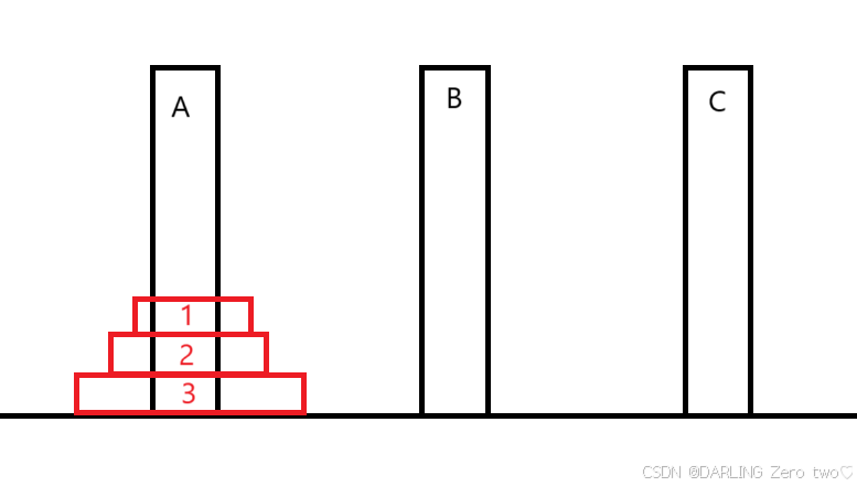 题目介绍:从左到右有A、B、C三个柱子,刚开始在A柱上从上到下套有1、2、3盘,其大小逐渐变大,盘子只能一个一个挪,借助于B柱,将A柱上的盘全部转移到C柱上,挪的过程中,盘子一定是上小下大 问:转移3个盘子需要多少步?
