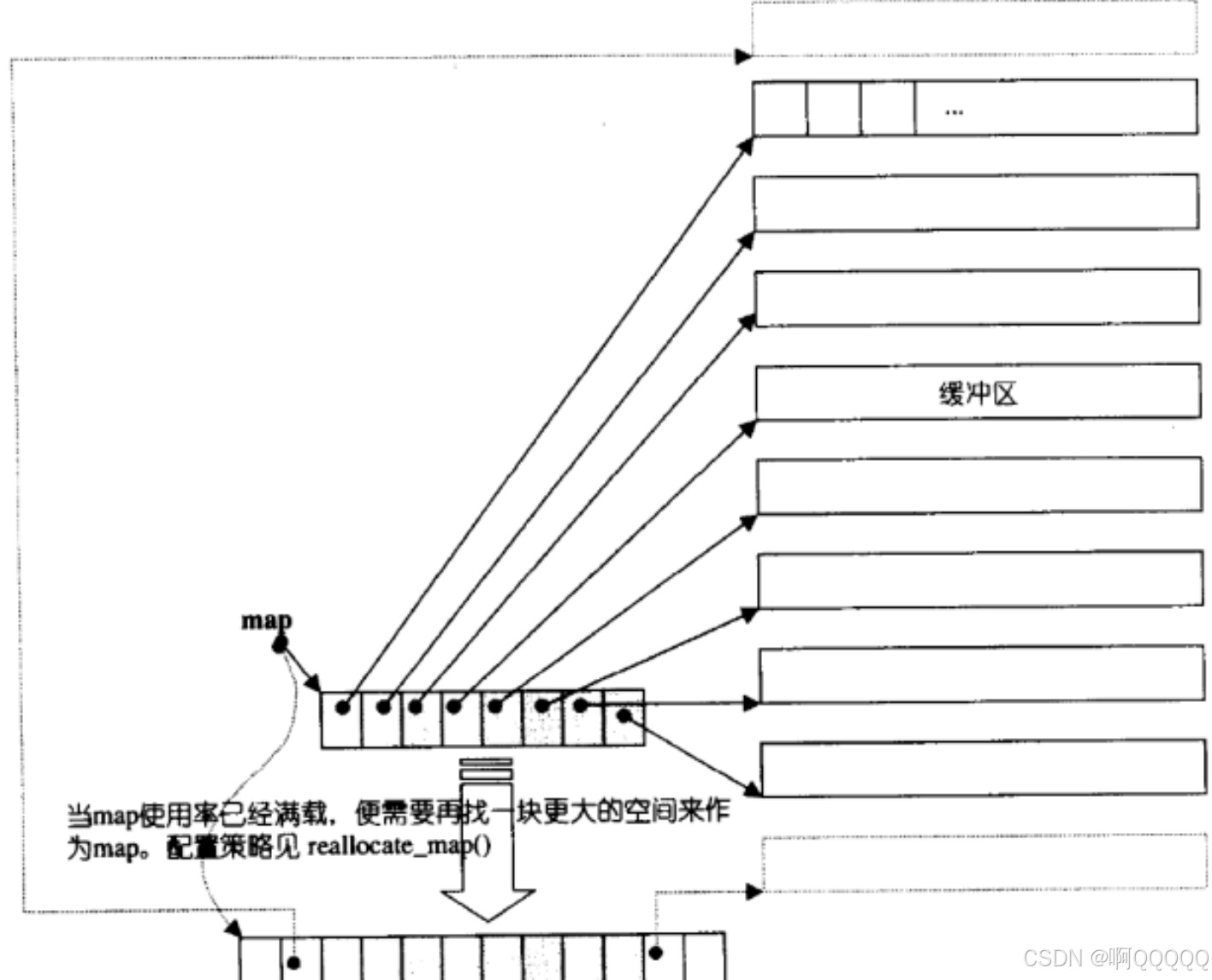 注意的是:从图中我们可以看到,第一个buffer数组并非是指针数组的第一个位置,这是为了方便头插,所以给前面留下的空间;