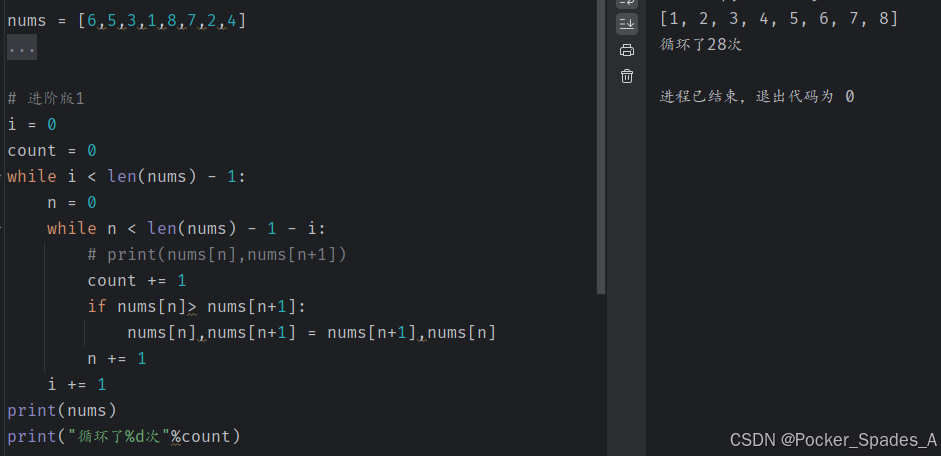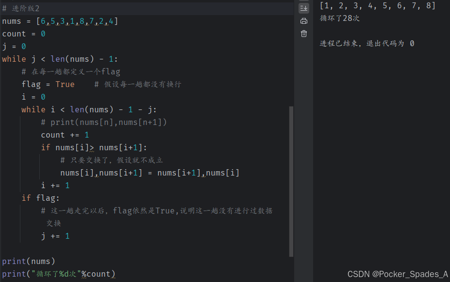 # 这一趟走完以后,flag依然是True,说明这一趟没有进行过数据交换
