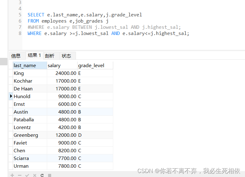 AND employees.job_id = jobs.job_id;注意: 我们要 控制连接表的数量 。多表连接就相当于嵌套 for 循环一样,非常消耗资源,会让 SQL 查询性能下降得很严重,因此不要连接不必要的表。在许多 DBMS 中,也都会有最大连接表的限制。