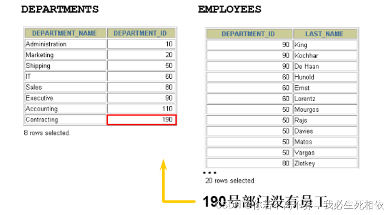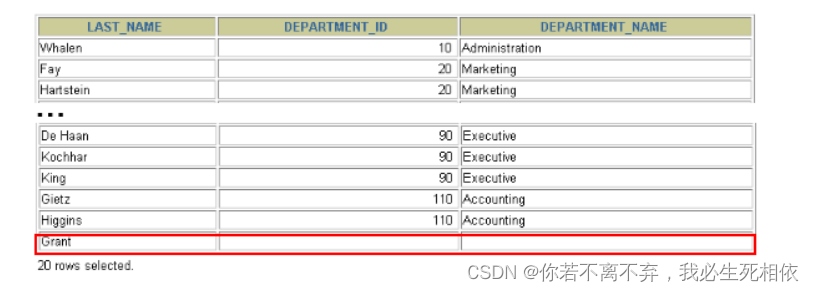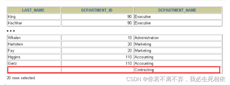 WHERE employees.department_id(+) = departments.department_id而且在 SQL92 中,只有左外连接和右外连接,没有满(或全)外连接。