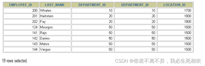 WHERE employees.department_id = departments.department_id在表中有相同列时,在列名之前加上表名前缀。
