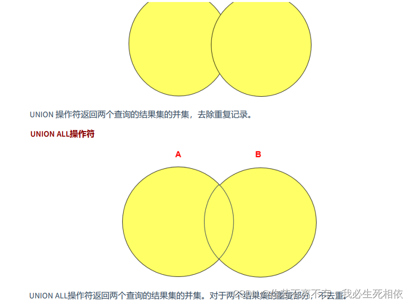 UNION:会执行去重操作 UNION ALL:不会执行去重操作