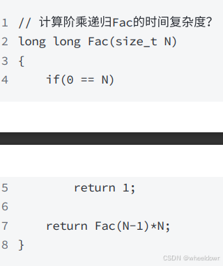 定义:在计算机科学中,算法的时间复杂度是⼀个函数式T(N),它定量描述了该算法的运⾏时间。