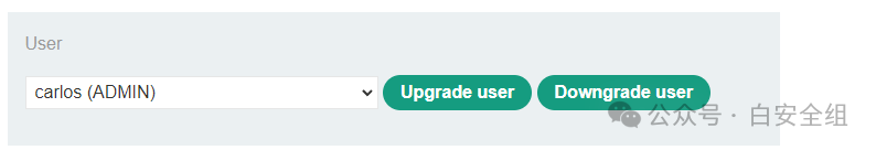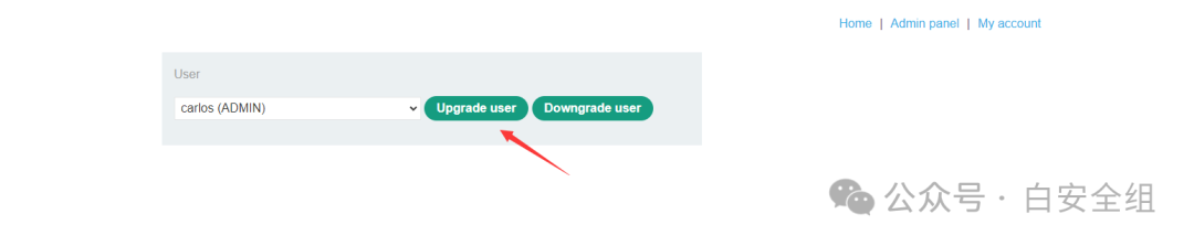 首先登录给的管理员用户,来查看功能,管理员有一个提升权限的功能,如果我们想要作为普通用户去使用提升用户权限功能,我们就需要将发送的模式改成get发送