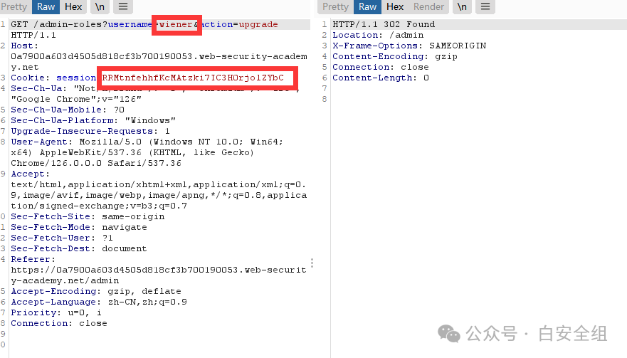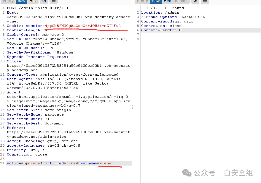 具体步骤就是,我们首先登录管理员页面,对其两个步骤的数据包进行抓包,并且在两个数据包中,进行修改cookie,将cookie修改成我们普通用户权限的cookie,并且将用户名改为我们普通权限用户名,来尝试提升权限。