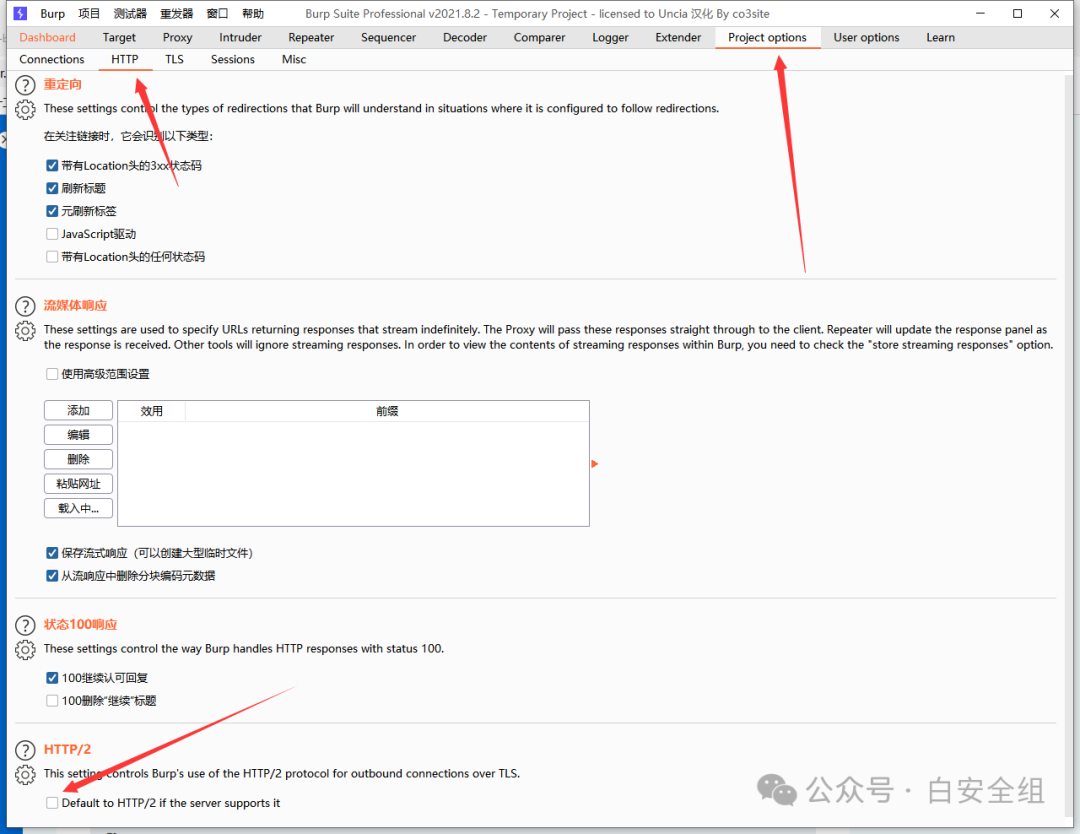 上面http/2需要取消掉勾才能成功抓包,正常访问。