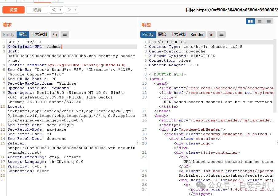 这种规则拒绝管理员组中用户访问,一些程序框架支持各种非标准HTTP头,可以在请求中覆盖url,例如X-Original-URL或者X-Rewrite-URL